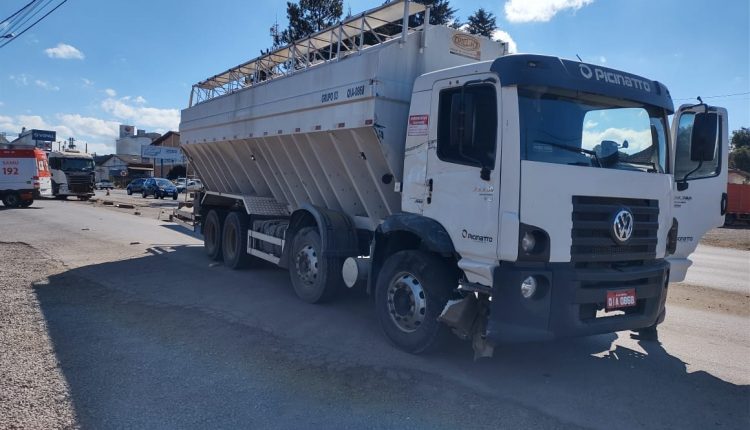 Por volta das 13h40 desta segunda-feira (26), o Corpo de Bombeiros Militar de Videira, foi acionado para atender um acidente de trânsito na rodovia SC-355 no Rio das Pedras. Chegando no local foi constatado a colisão envolvendo um caminhão graneleiro placas de Catanduvas e um Bitrem com placas de Campos Novos.