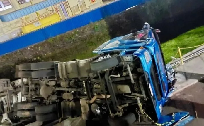 Segundo informações dos Bombeiros, a carreta, carregada com carne e estacionada no pátio de uma agroindústria, começou a descer desgovernada em direção ao Rio Caçador.