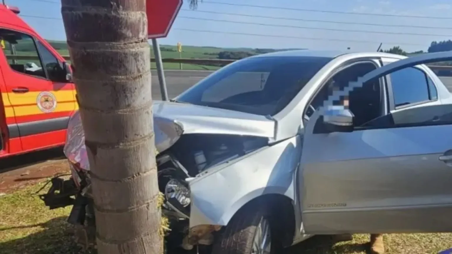 Um acidente de trânsito mobilizou socorristas e chamou atenção na tarde desta quinta-feira (21) em Capinzal, no Oeste de Santa Catarina. Um automóvel Volkswagen Voyage bateu na traseira de um ônibus de turismo e, em seguida, colidiu violentamente contra uma árvore palmeira às margens da SC-467, nas proximidades do Loteamento Novo Horizonte.