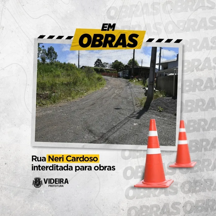 A Prefeitura de Videira anunciou a realização de obras de pavimentação em paver na Rua Neri Cardoso, localizada no bairro Nossa Senhora Aparecida, nos dias 1º, 2 e 3 de dezembro. Nesse sentido, em decorrência desses trabalhos, a via estará temporariamente interditada para o trânsito de veículos até a conclusão das intervenções.