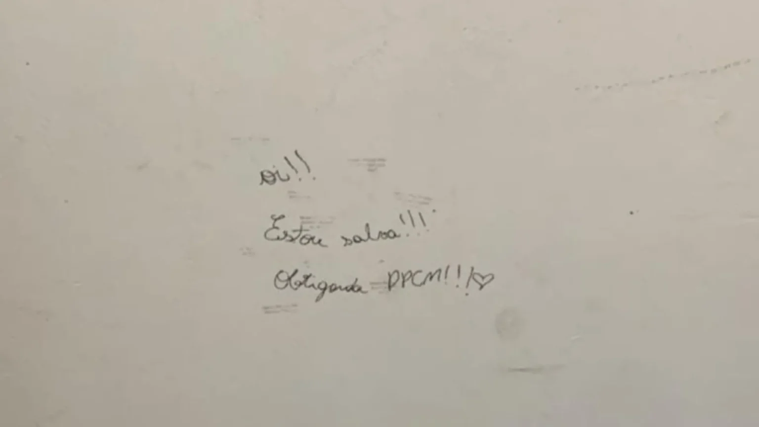 Uma frase escrita na parede da brinquedoteca da Delegacia de Proteção à Criança, ao Adolescente, à Mulher e ao Idoso (DPCAMI) de Chapecó, no Oeste de Santa Catarina, emocionou policiais na manhã desta terça-feira (4). Em letras simples, uma criança deixou o recado: “Oi, estou salva. Obrigada DPCAMI.”