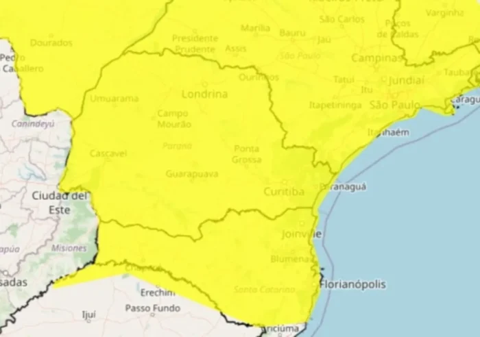 Santa Catarina em alerta amarelo para chuvas intensas e ventos fortes