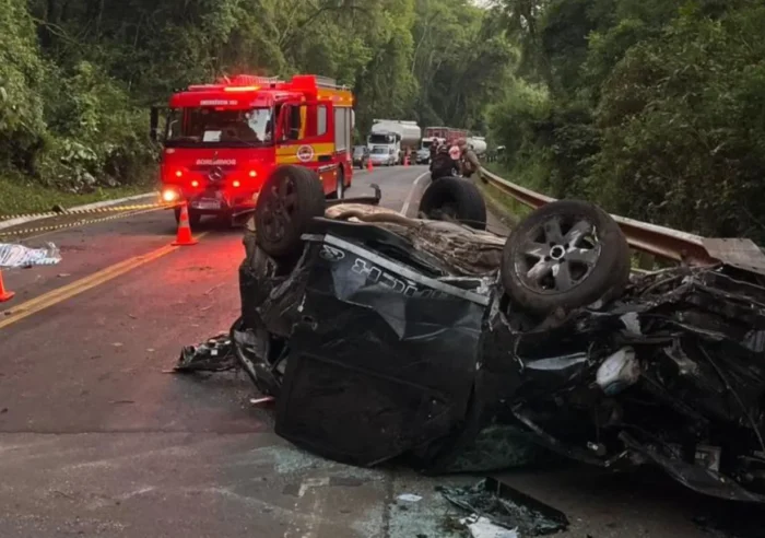 Mulher morre e jovem fica ferido após capotamento na SC-150