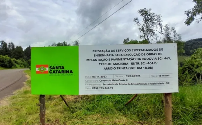 Os moradores dos municípios de Macieira e Arroio Trinta seguem acompanhando as obras de pavimentação da SC-464 que liga os dois perímetros urbanos e com o asfalto promete melhorar o escoamento da produção agrícola com impacto direto no desenvolvimento econômico da região, assim como encurtar distâncias e dar segurança a quem diariamente trafega pelo local.