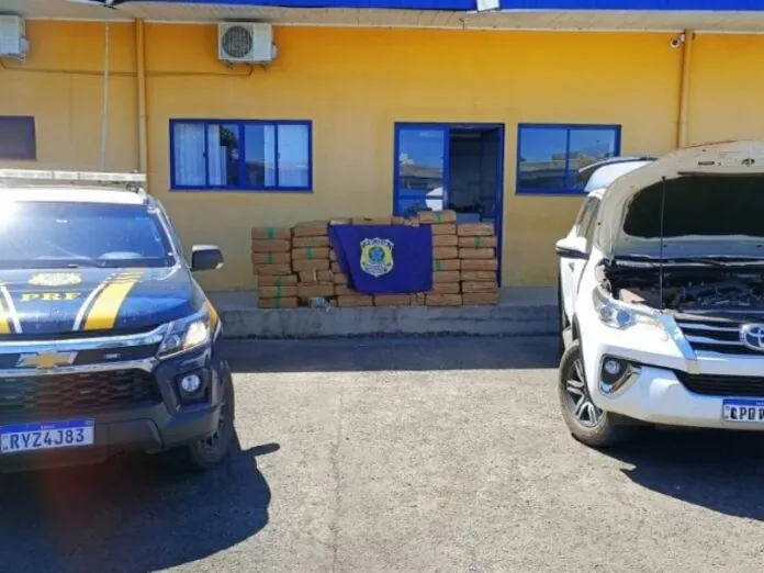 Na tarde desta quinta-feira (6), a Polícia Rodoviária Federal apreendeu 1.136 kg de maconha e recuperou uma Toyota/Hilux SW4 roubada na BR-282, em Lages. A droga estava escondida no porta-malas e banco traseiro do veículo, coberta por panos pretos.