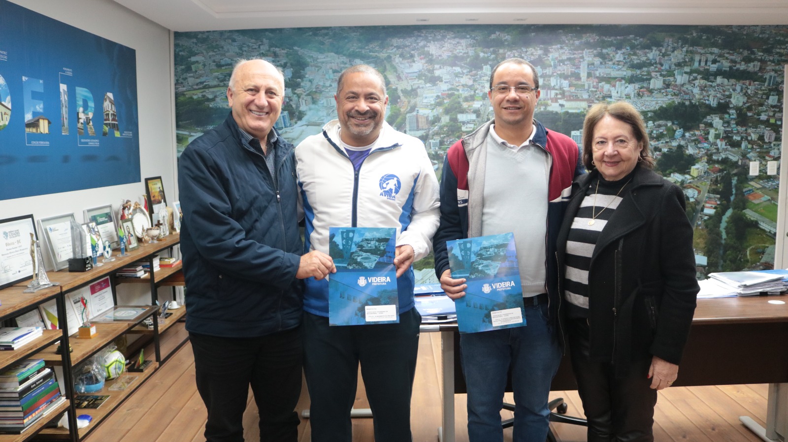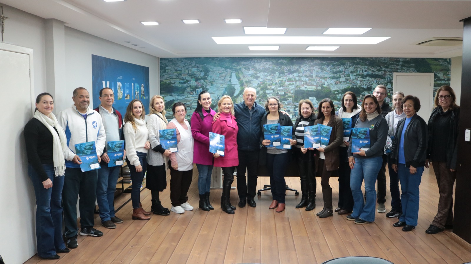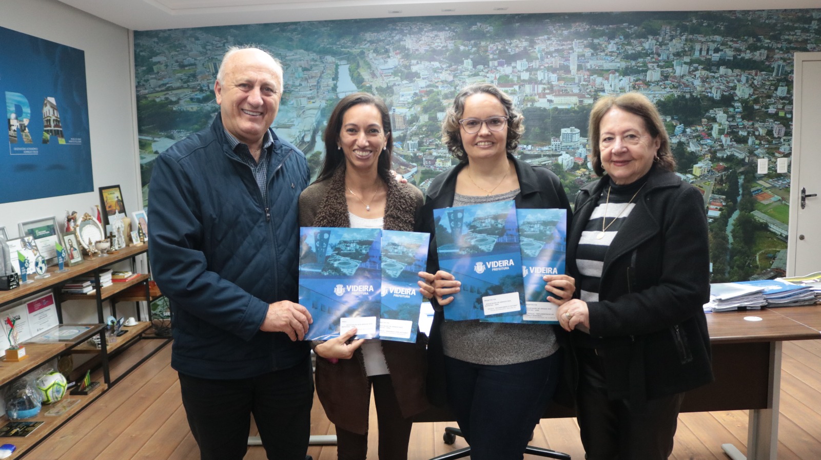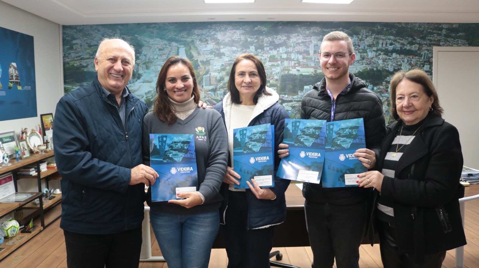Representantes de seis entidades de Videira estiveram no Gabinete da Administração Municipal nessa quarta-feira, 26 de junho, para participarem da assinatura dos termos de fomento para transferência de recursos arrecadados pela Secretaria de Assistência Social, Habitação, Trabalho e Renda.