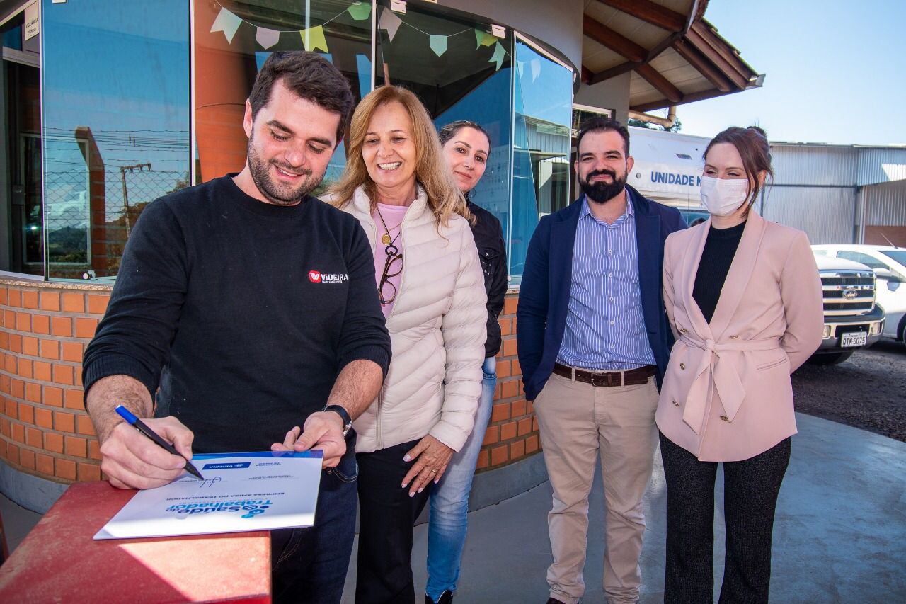 A empresa recebeu a placa com o selo “Empresa Amiga do Trabalhador”, que foi entregue pela Secretária de Saúde, Ivanice Peccin.