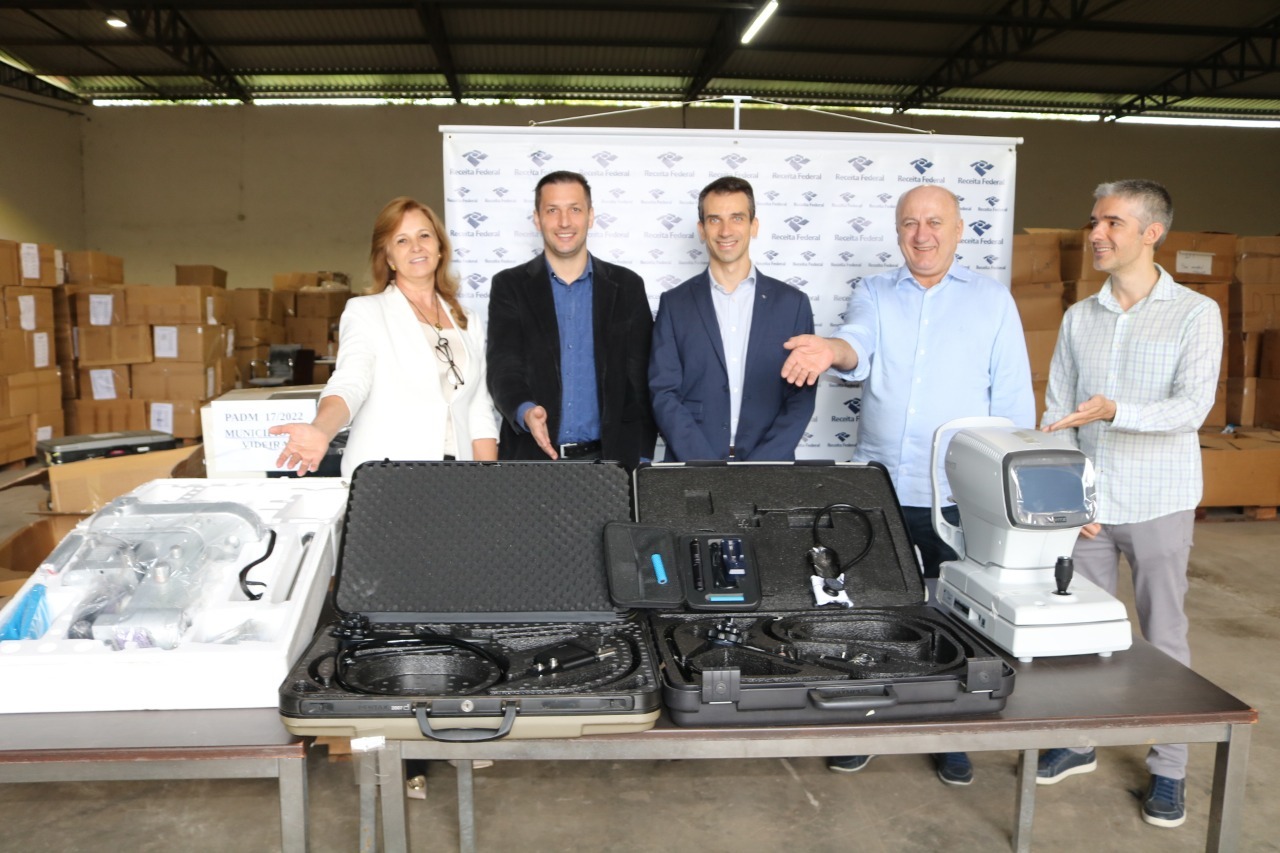 O repasse de cerca de 30 equipamentos foi feito nesta quarta-feira (23), na cidade de Joaçaba, pelo Delegado da Receita Federal local, Mauro Batista Neto, ao Prefeito Dorival Carlos Borga, à Secretária de Saúde, Ivanice Peccin e ao Diretor do Hospital Salvatoriano Divino Salvador, André Ragnini.