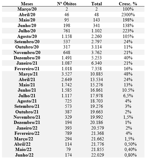 Com isso, o resultado agregado revelou que as mortes relativas ao primeiro semestre de 2022 representam 8,5% das 22.029 mortes.