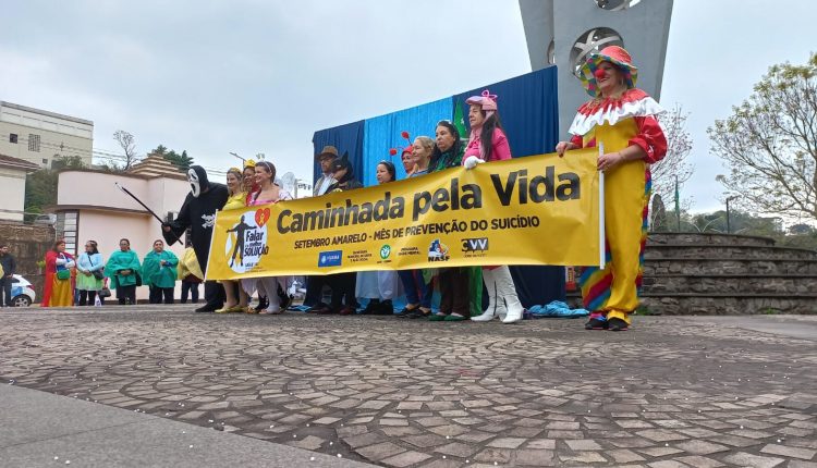 Com cartazes, fantasias e músicas sobre a valorização da vida, o grupo de mais de 300 pessoas saiu para a caminhada e seguiu pela Rua Nicolau Cavon e XV de Novembro.