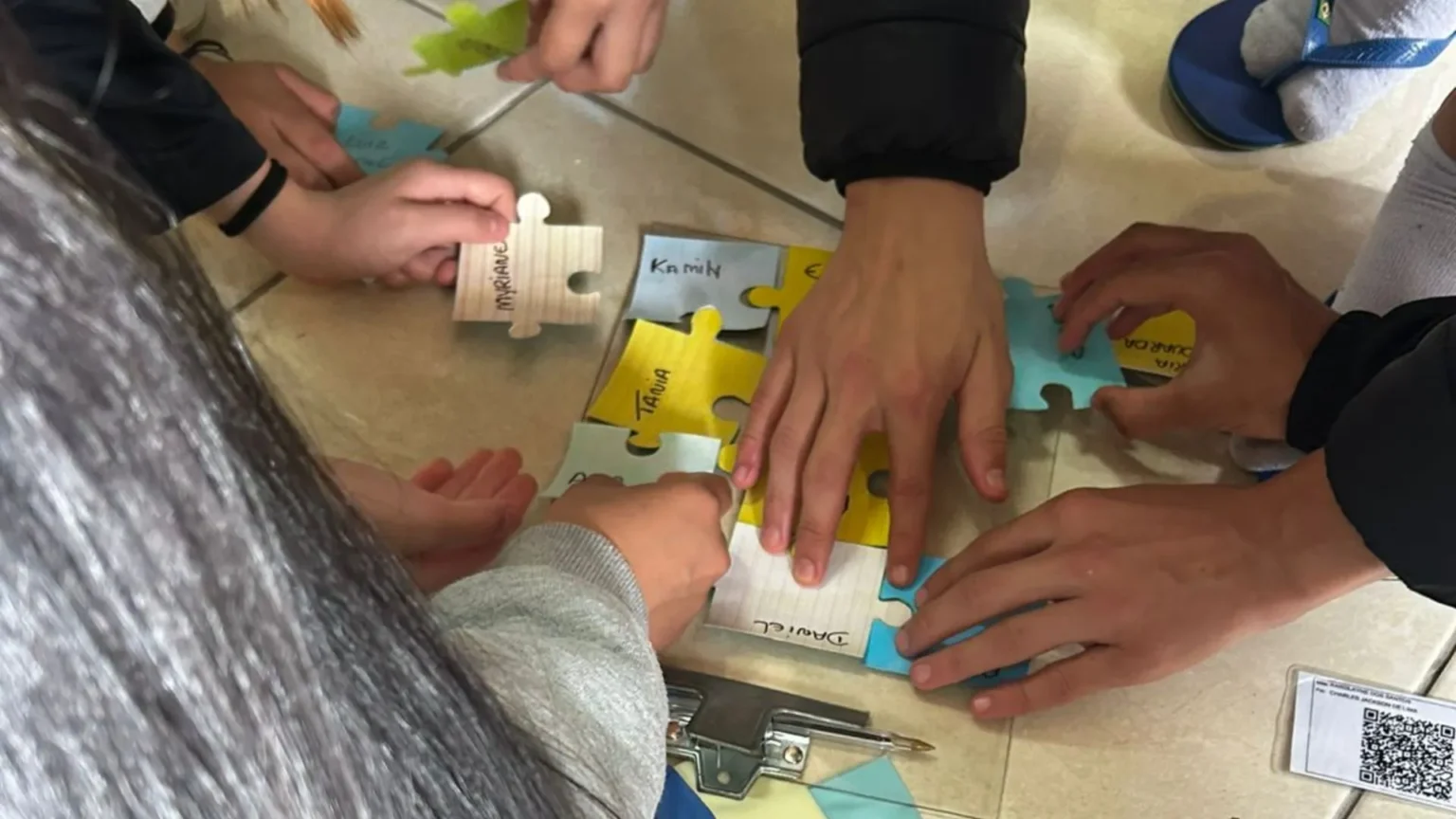 A atividade final incluiu declarações de incentivo entre os participantes e a montagem de um quebra-cabeça simbólico, representando que cada jovem é uma peça essencial para a convivência harmoniosa dentro da escola.