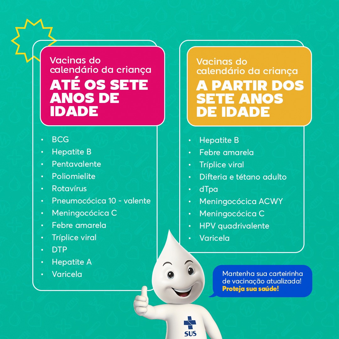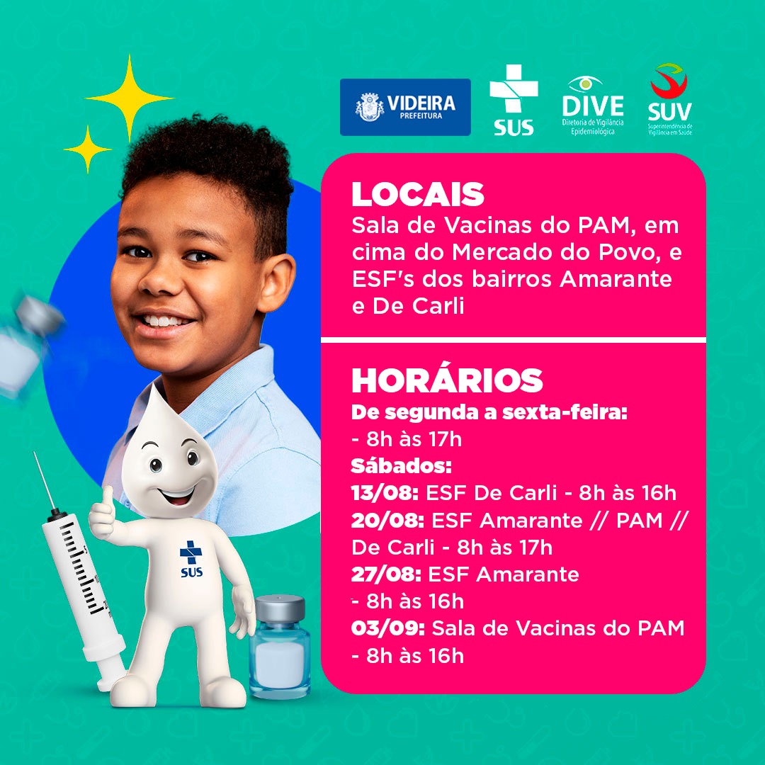 Começou a Campanha Nacional de Vacinação Contra a Poliomielite e de Multivacinação para Criança e Adolescente de 0 a 14 anos.