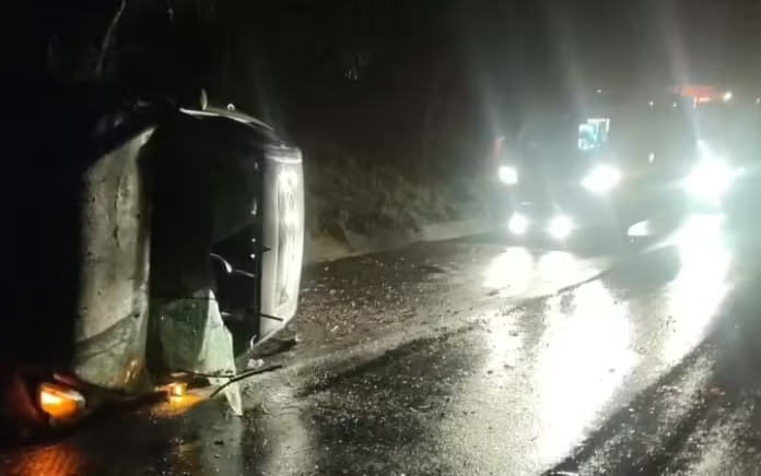 No local, foi constatado que um veículo Ford Focus, de cor branca e placa de Caçador, havia capotado na rodovia. O condutor, um homem de 27 anos, perdeu o controle do veículo, resultando no capotamento. Ao chegarem ao local, os socorristas encontraram o motorista deambulando na cena do acidente, apresentando suspeita de fratura na clavícula.