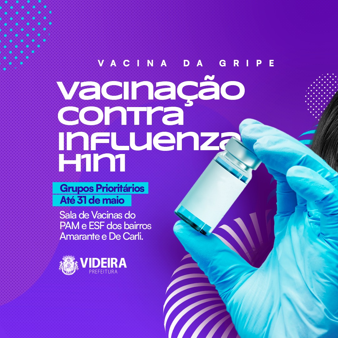 A partir de segunda-feira, dia 10 de abril, a Secretaria de Saúde de Videira dará início a aplicação da vacina contra a Influenza H1N1, conhecida como a Vacina da Gripe, para os grupos prioritários.