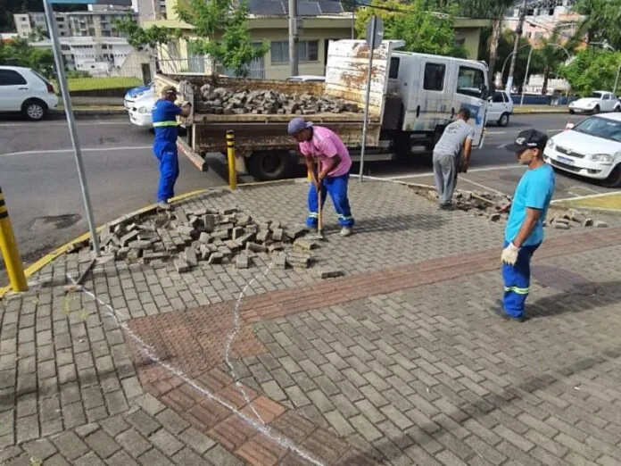 Os serviços compreendem a retirada de parte das calçadas que foram alargadas, principalmente nos cruzamentos, quando foram implantadas as alterações que deixaram o trânsito com a configuração atual.