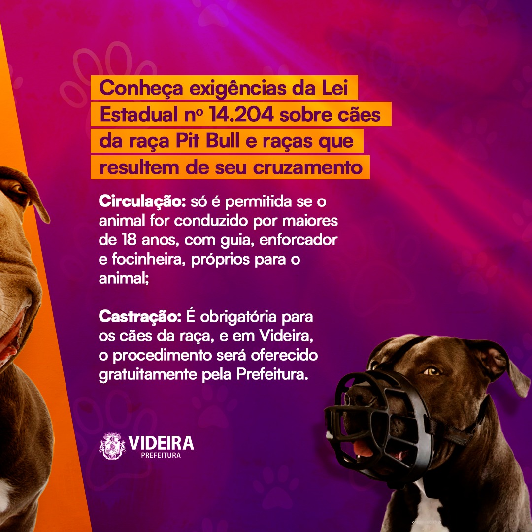 Além da castração, a lei também estabelece que os cães da raça Pit Bull devem ser conduzidos apenas por maiores de 18 anos, utilizando guia, enforcador e focinheira próprios para o animal.