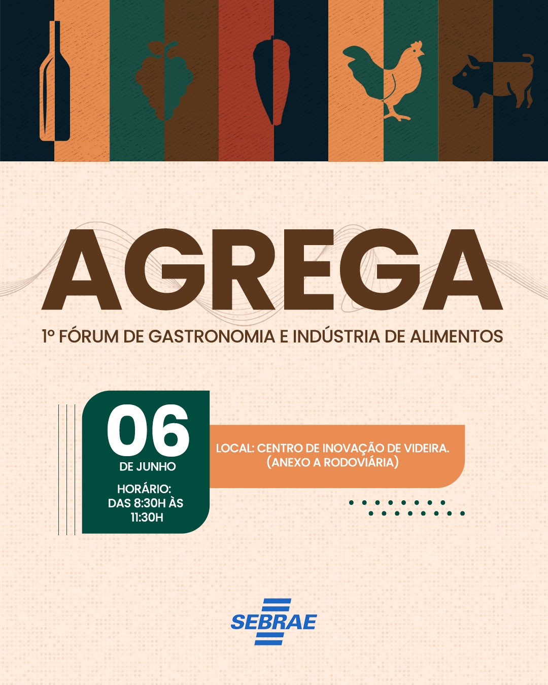 Em 06 de junho, o Centro de Inovações em Videira será palco do 1º Fórum de Gastronomia e Indústrias de Alimentos e Bebidas do Meio Oeste Catarinense. Realizado pelo Sebrae, o evento reunirá empresários e profissionais do setor de alimentos e bebidas da região para debater tendências, desafios e oportunidades desse mercado.